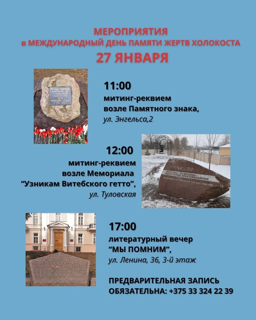 В рамках мероприятий к Международному дню памяти жертв Холокоста состоится литературный вечер «МЫ ПОМНИМ».