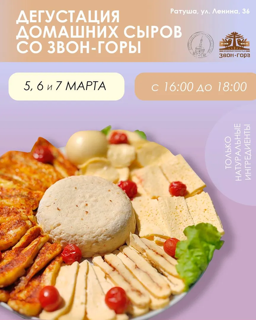 Приглашаем всех желающих 5, 6 и 7 марта с 16:00 до 18:00 на дегустацию домашних сыров со «Звон-Горы» в рамках выставки-ярмарки в Ратуше!
